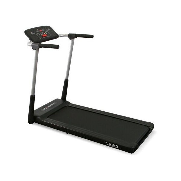 У модели CARBON Т220 есть 2 основных и 2 дополнительных компенсатора неровностей пола, за счет чего тренажер легко привести в нужное положение. Перемещение тренажера происходит за счет 2-ух транспортировочных роликов. Все показания тренировочного процесса размещены на ярком буквенно-цифровом LCD-дисплее. Данные видно при любом освещении. На консоли есть удобные быстрые клавиши контроля скорости бегового полотна, а также старта и окончания тренировки. Дополнительной опцией является возможность регулировки наклона дисплея для пользователей с любыми антропометрическими данными.